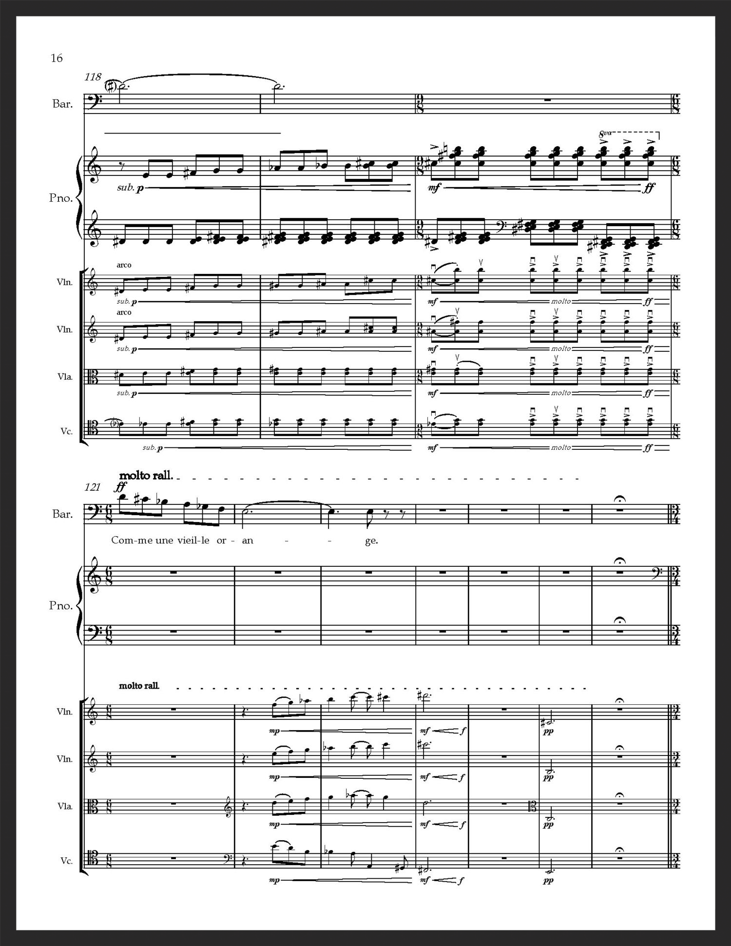 11', for baritone, string quartet, and piano, text by Charles Baudelaire