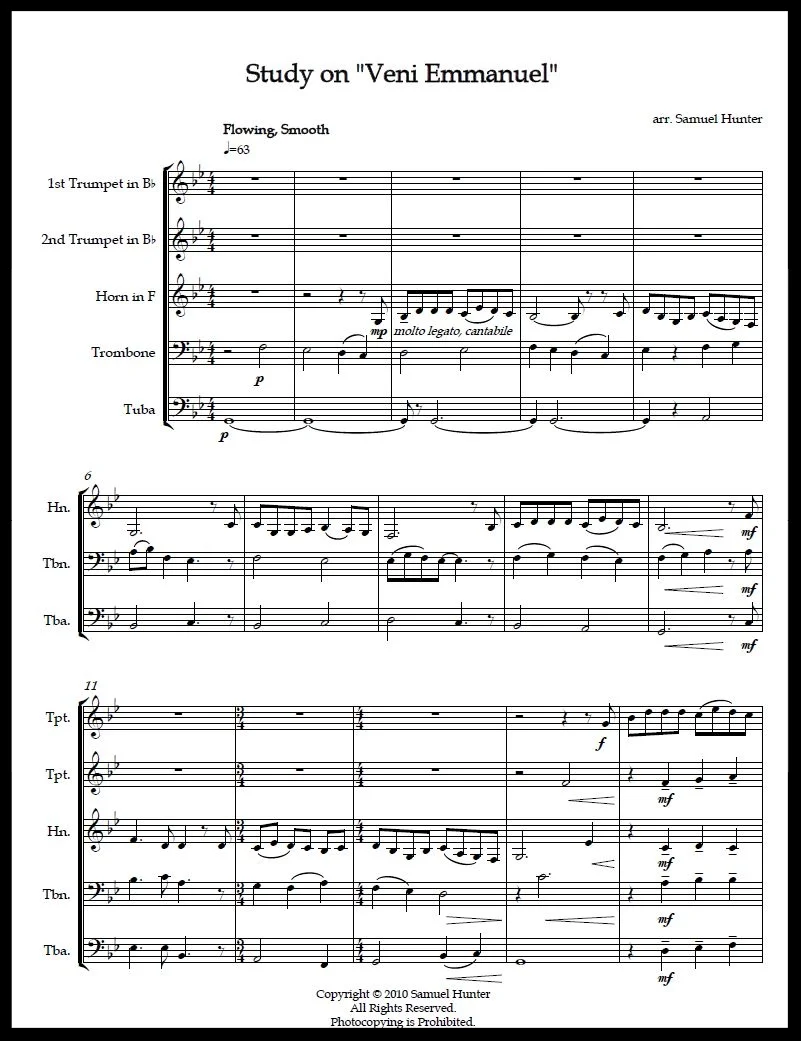 Order printed or PDF copies of score and/or parts for Study on "Veni Emmanuel"